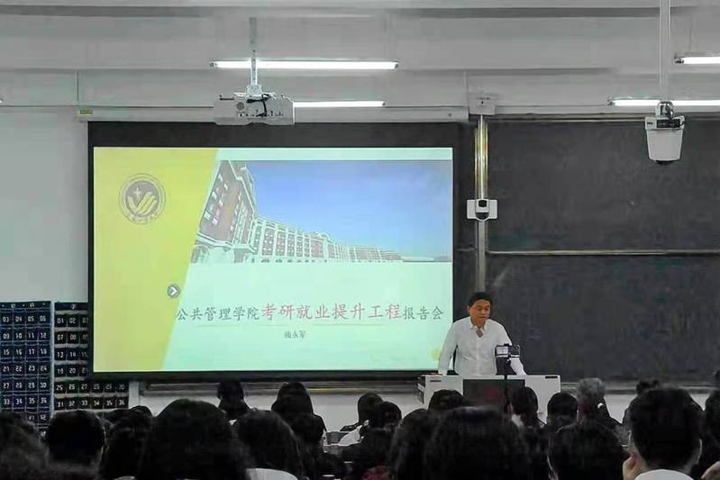 18级和19级的全体同学做了考研和就业提升质量工程报告,报告会由王越副书记主持,白嫖网