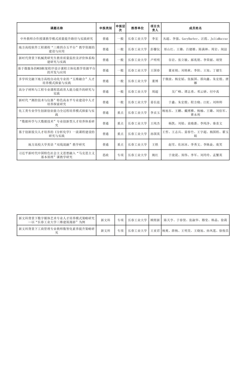 长春工业大学2021年吉林省高等教育教学改革立项课题名单