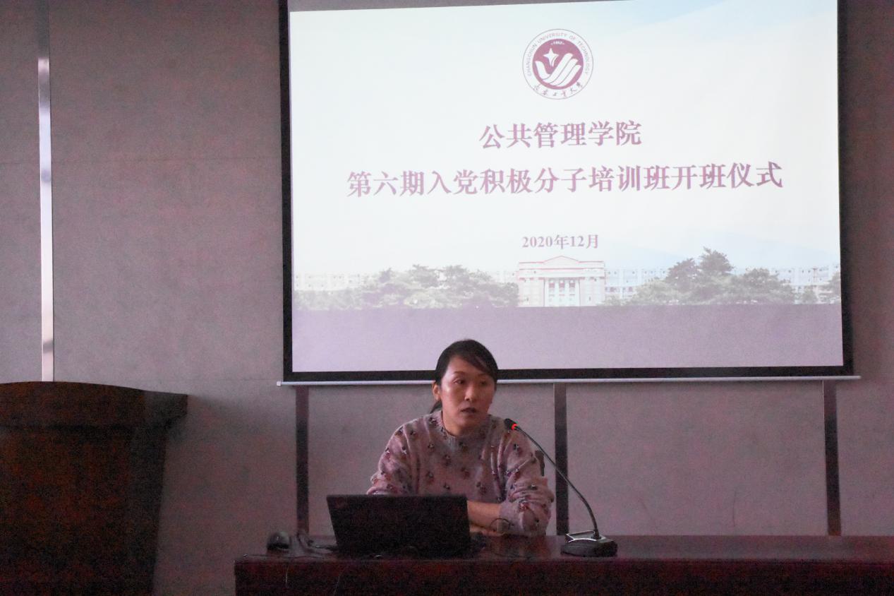 12月11日,第六期入党积极分子培训班开班仪式圆满完成,由学生党支部书记赵君老师担任主讲人,党委副书记王越老师、团委书记陈磊老师、18级辅导员别克老师出席本次活动。