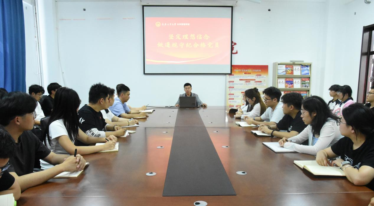 于洪书记以“坚定理想信念,做遵规守纪合格党员”为主题,围绕毕业生党员如何在新时代更好地发挥党员作用,从三个方面展开了深入讲解。