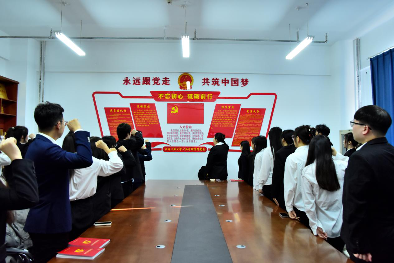 在北湖东区主楼402党员活动室组织开展老党员重温入党誓词、新发展党员入党宣誓仪式。会议由研究生第二党支部副书记陈辛妮主持,学生党员代表、新发展党员、入党积极分子代表参会。