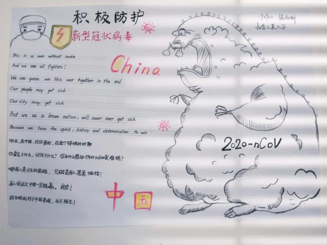 在这个充满爱心的日子,部分同学展现文采,画了一些防疫书画,弘扬雷锋精神,发扬志愿者意志!