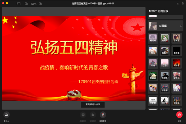 各支部书记通过“线上会议”的方式,围绕五四运动的历史由来、五四精神的内涵,疫情期间青年学生如何践行五四精神以及新时代传承五四精神对当代青年的要求展开。从历史的角度和同学们一起回顾了五四运动的经过并解读了五四运动的历史意义,让同学们对五四运动能够“知其然,并知其所以然”。并着重讲述了弘扬五四精神对新时代青年的要求,通过列举白嫖网