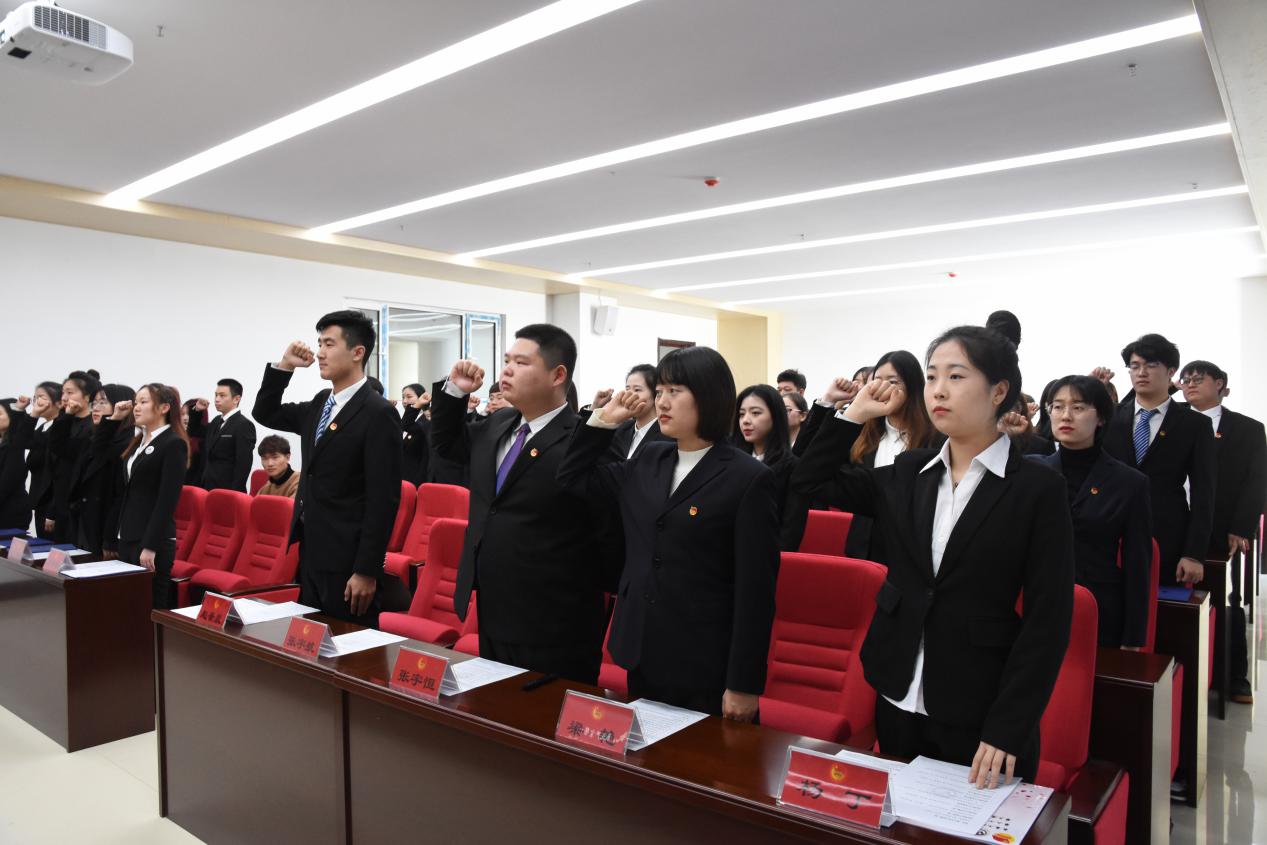 全体团学干部在团委副书记张宇航的带领下进行宣誓