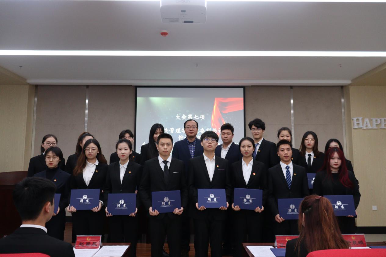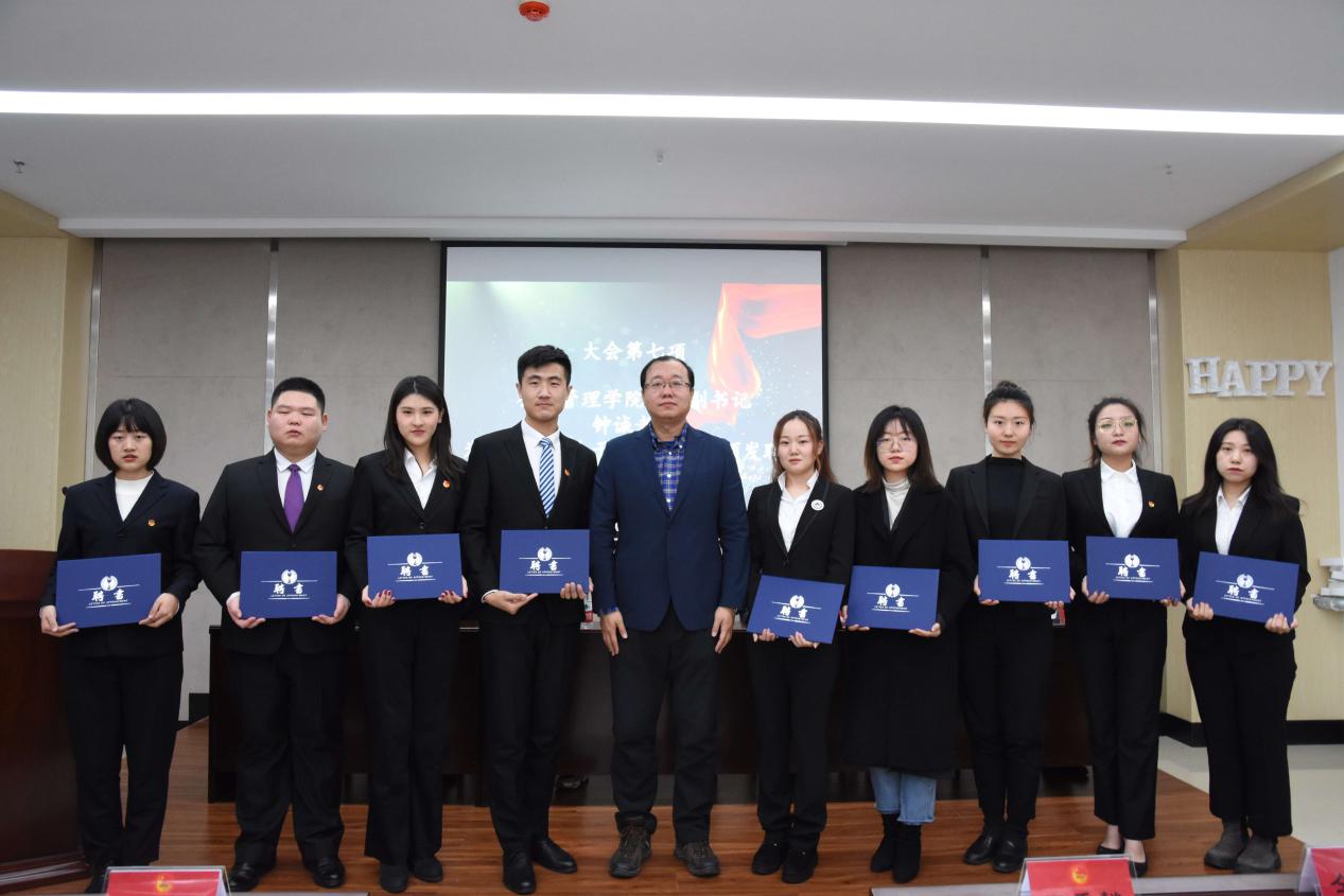 公共管理学院党委副书记钟诚老师为当选的团委、学生会、研究生会干部颁发聘书