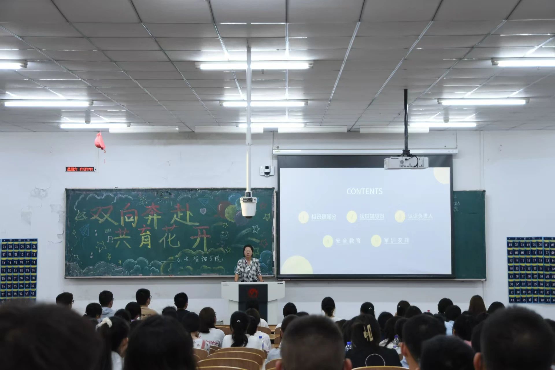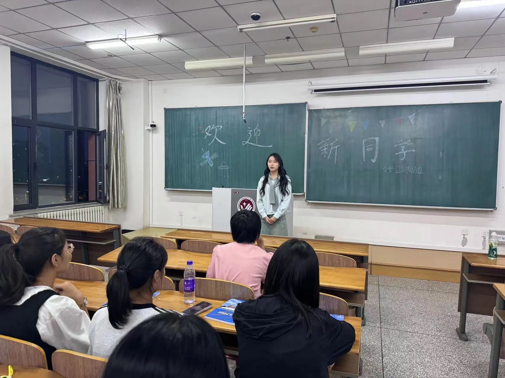 解答完后,崔老师将各班班代依次介绍给2024级新生同学,各班班代在进行自我介绍的同时,也表达了自己对新入学同学们的美好祝愿,希望同学们能在日后的大学生活中勤勉上进,有所成就。
