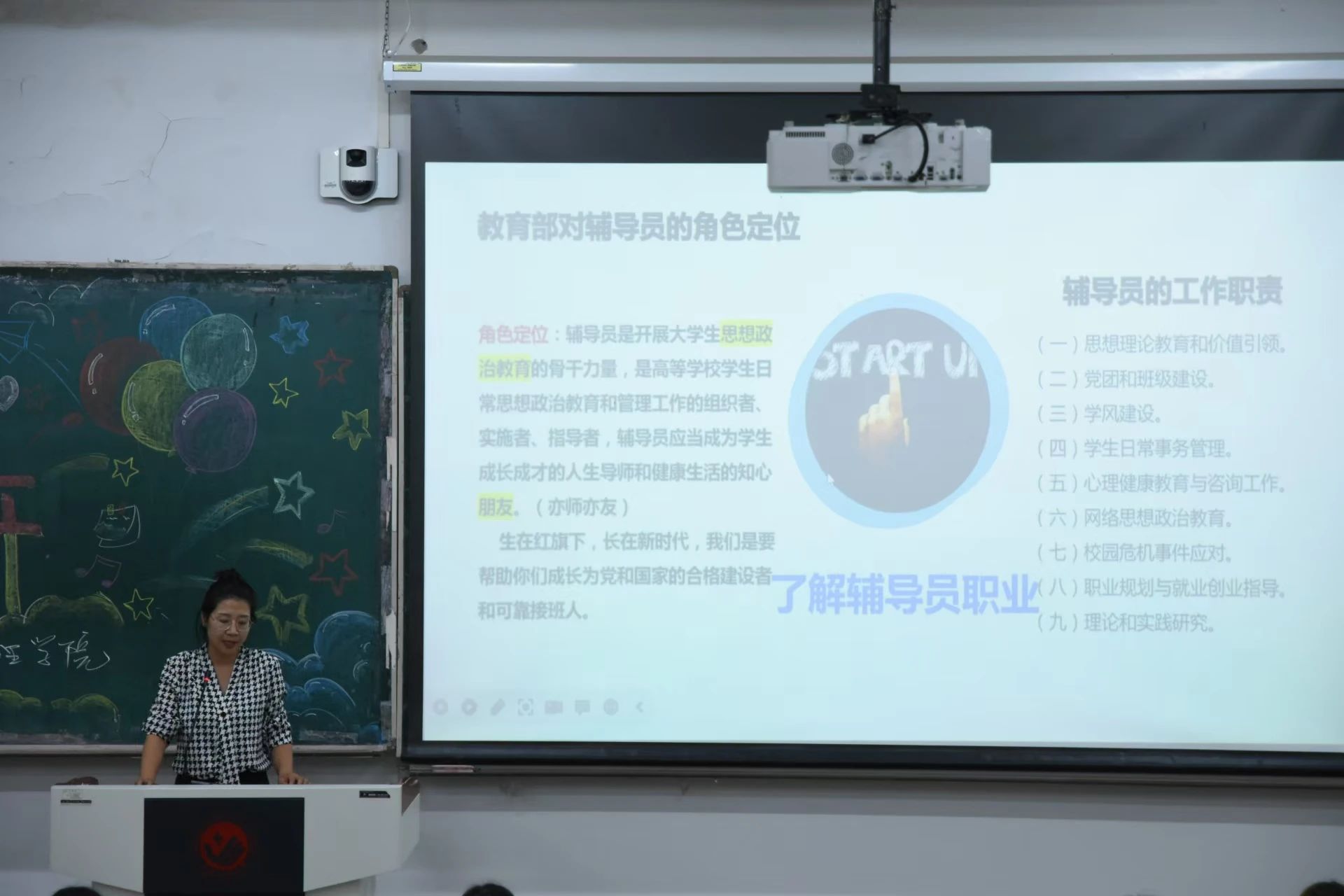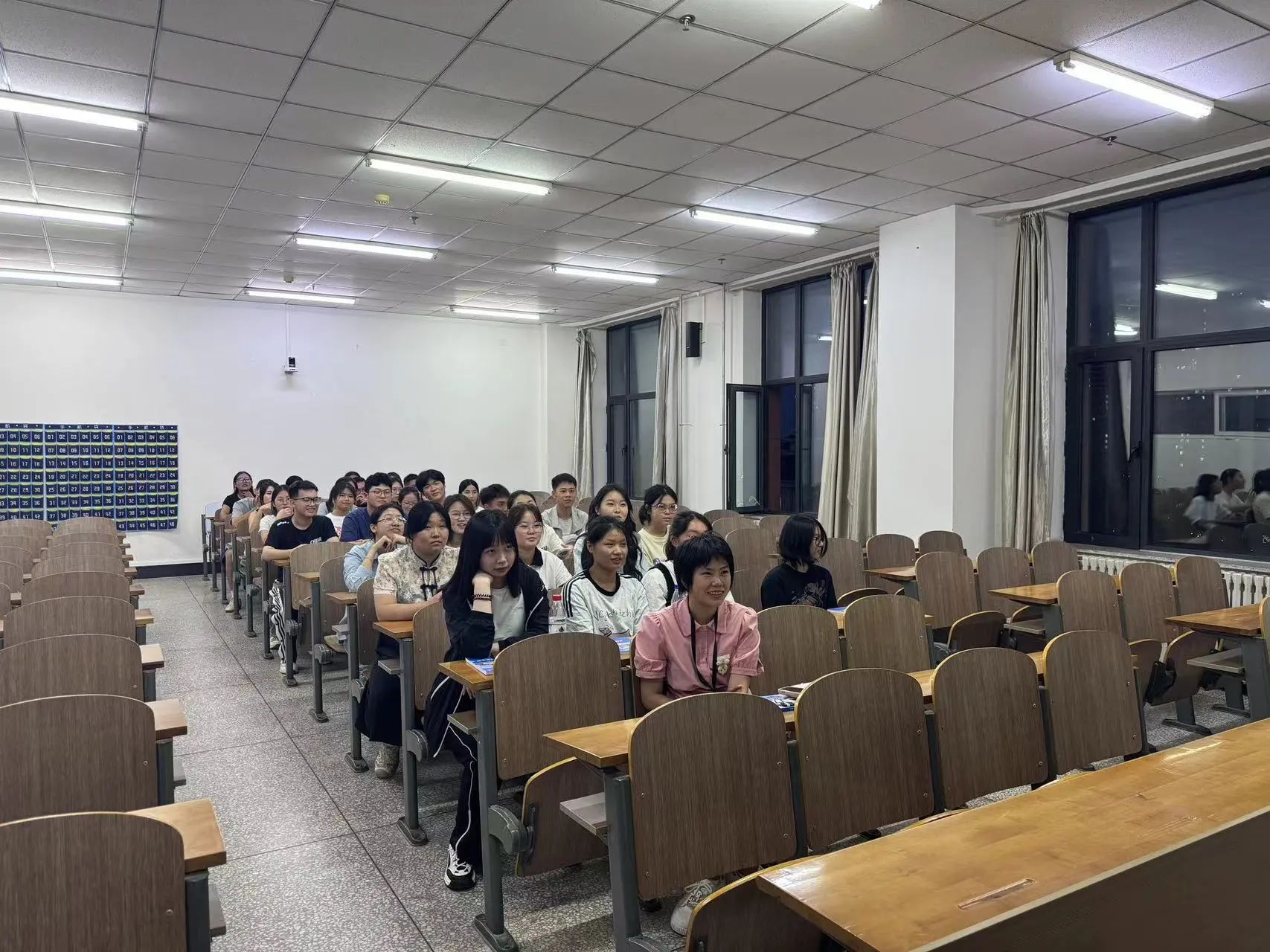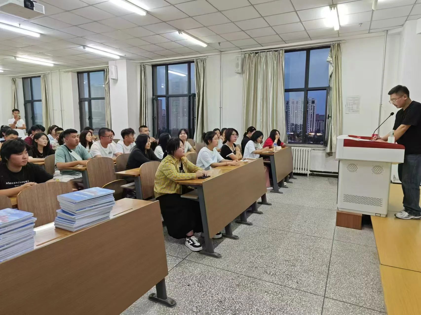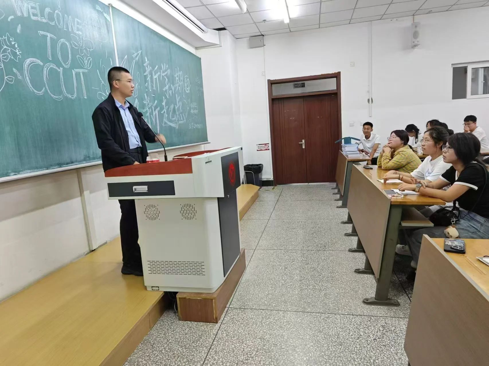 组织的各种活动,叮嘱同学们要在大学期间多尝试、多探索,合理安排时间,提升自我管理能力。在答疑环节中,崔老师就新生们提出的有关入学适应、自主学习、专业发展方向等方面的问题进行了细致解答。