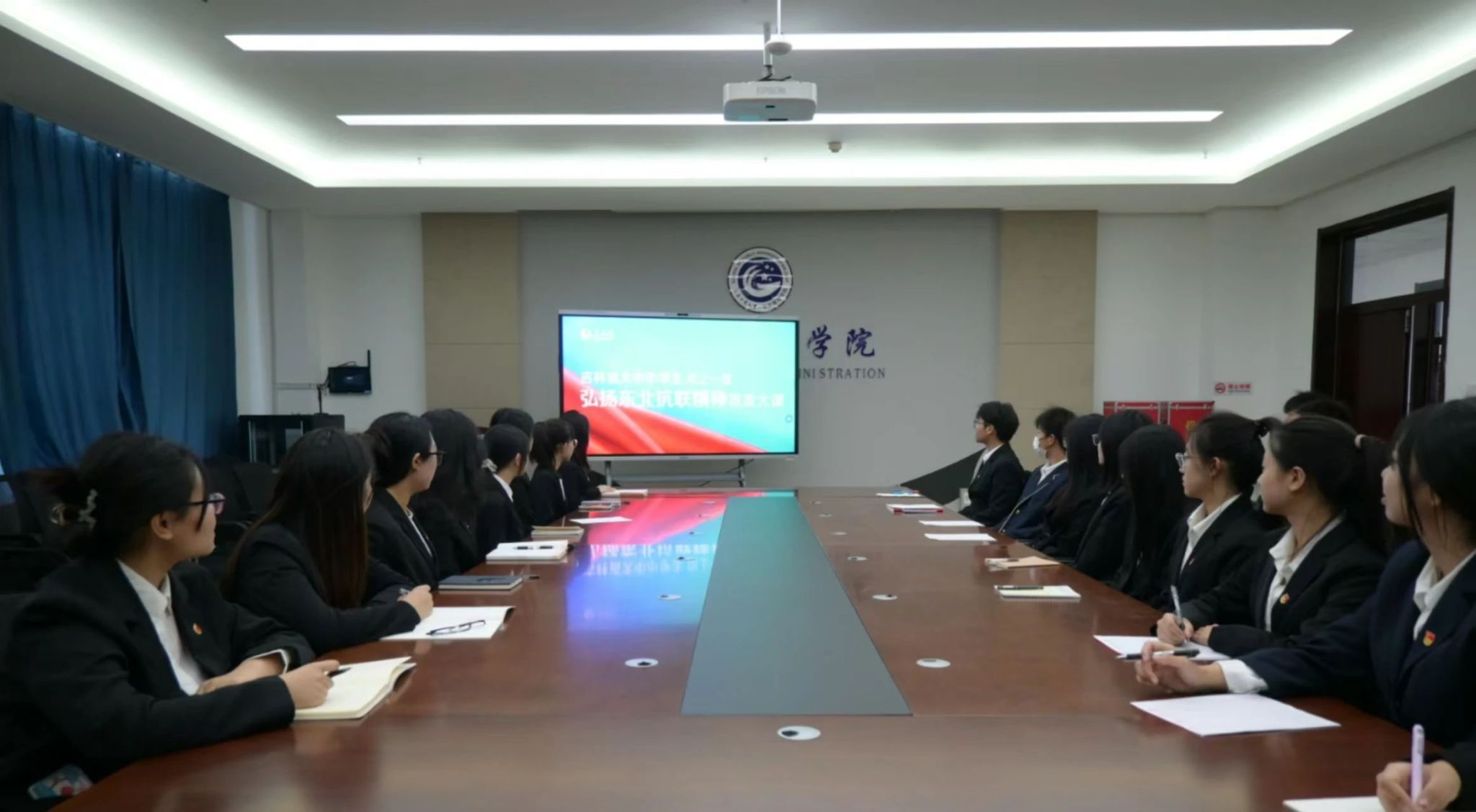 理论自学小组在北湖东校区主楼401会议室观看由吉林省教育厅联合吉林杨靖宇干部白嫖网