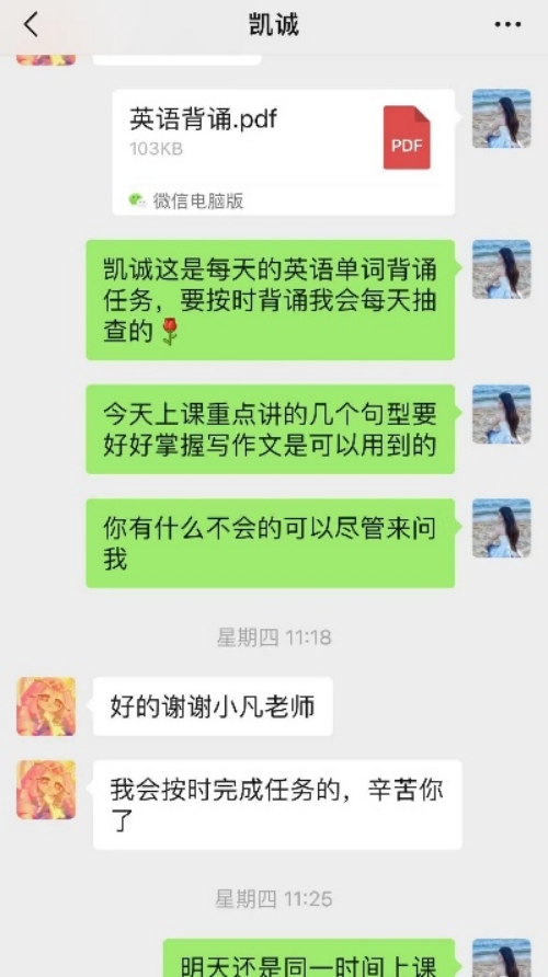 初次交流时,我全面了解他的英语学习情况,明晰优势与薄弱环节后,精心规划教学内容,力求每节课都精准高效。课后布置少量练习题,助力他巩固知识,熟练运用英语语法解题。