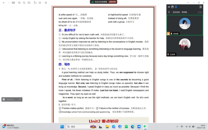众多品学兼优的志愿者积极响应号召,踊跃报名,并结合实际情况进行结对,通过微信、腾讯会议等工具开展线上课程。志愿者们课前广泛查阅资料、认真备课,课上为同学们耐心讲解、引导学生解决问题,课后细致跟进、帮助学生巩固知识,全方位、全流程的伴学服务,为青少年成长注入温暖动能,收获学生与家长的一致认可。