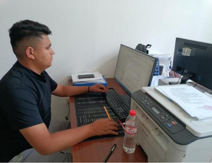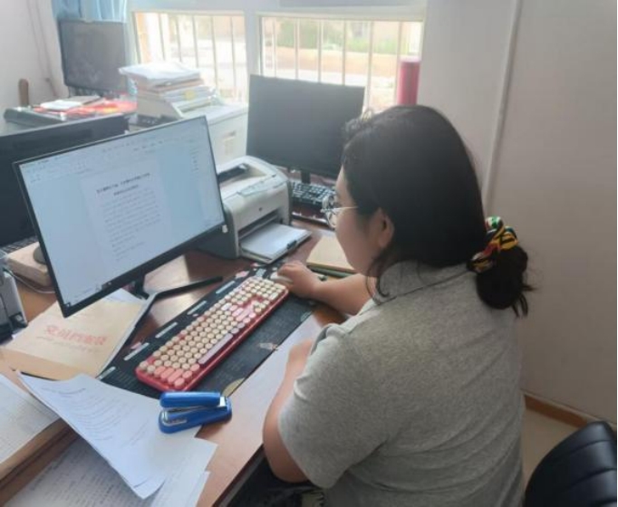 再敦拉同学进行家庭承包地汇总表的整理工作现场