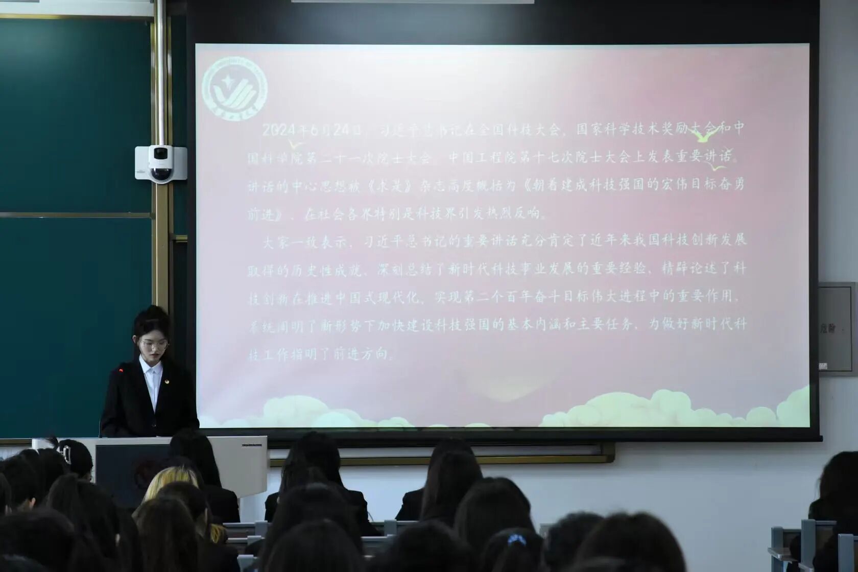 “求是”理论社团于4月16日在北湖东校区主楼101教室开展学习“逐梦科技强国,奋进时代征程”主题活动。