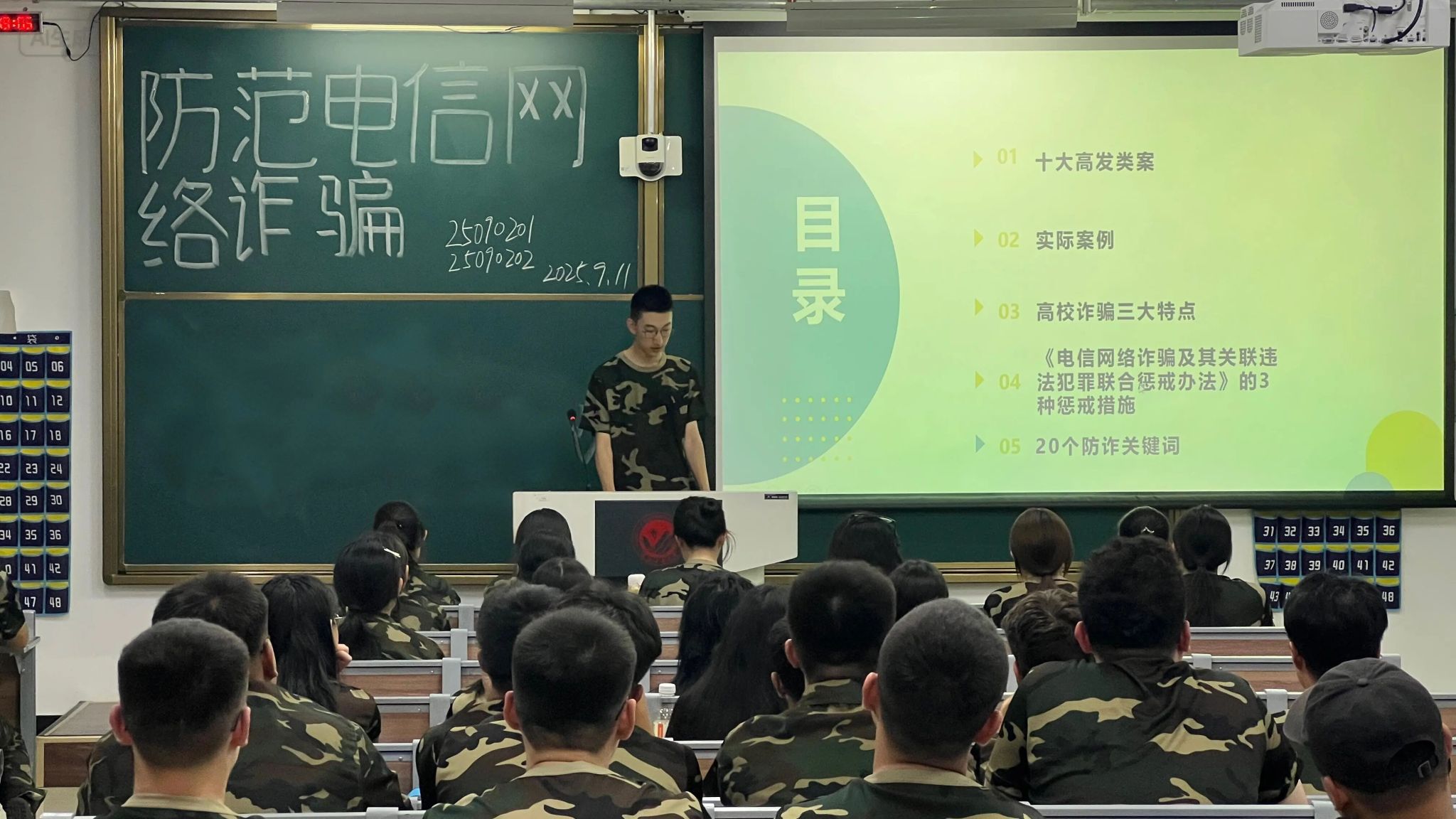 于北湖东校区主楼201等教室组织2025级各班有序开展新生防范电信网络诈骗专题学习活动。