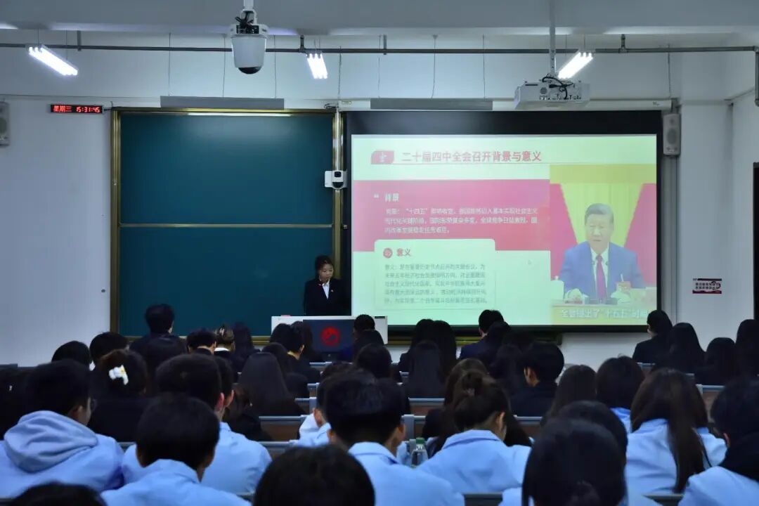 “求是”理论社团于10月29日下午在东区主楼232教室组织本学期第三次政治理论学习活动。本次活动以“学习党的二十届四中全会精神”为主题,旨在帮助学生深化对党的政策理解,强化新时代青年的责任担当。