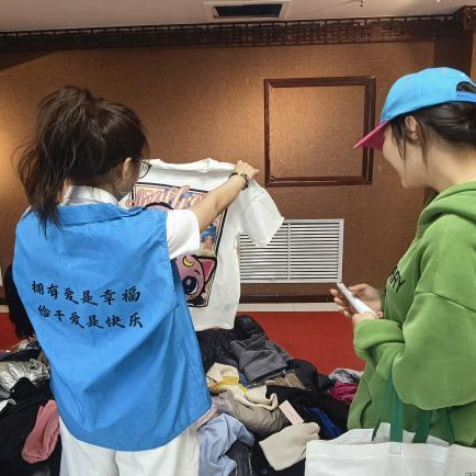 志愿者们迅速投入工作,将前期募捐所得的衣物仔细分类、整齐陈列,方便参与活动的小朋友及家长挑选心仪物品。