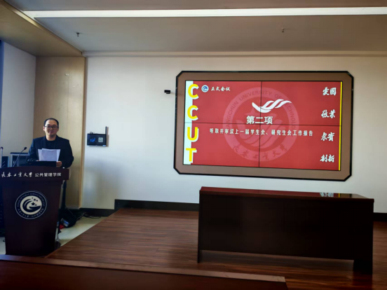 正式会议在庄严的国歌声中拉开帷幕,首先,第三十届学生会执行主席崔渝欣汇报院学生会工作情况,从"思想铸魂强根基""活动育人添活力""权益服务暖人心"三个维度,系统回顾过去一年的工作,并对新一届的学生会成员工作提出展望。