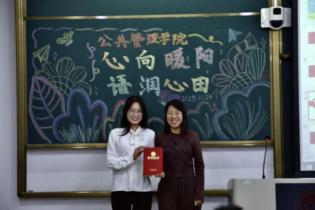 老师为获奖选手颁发荣誉证书与奖品,并鼓励他们继续做心理健康的“传播者”,带动身边更多同学关注心理成长,共同营造积极健康的校园氛围。