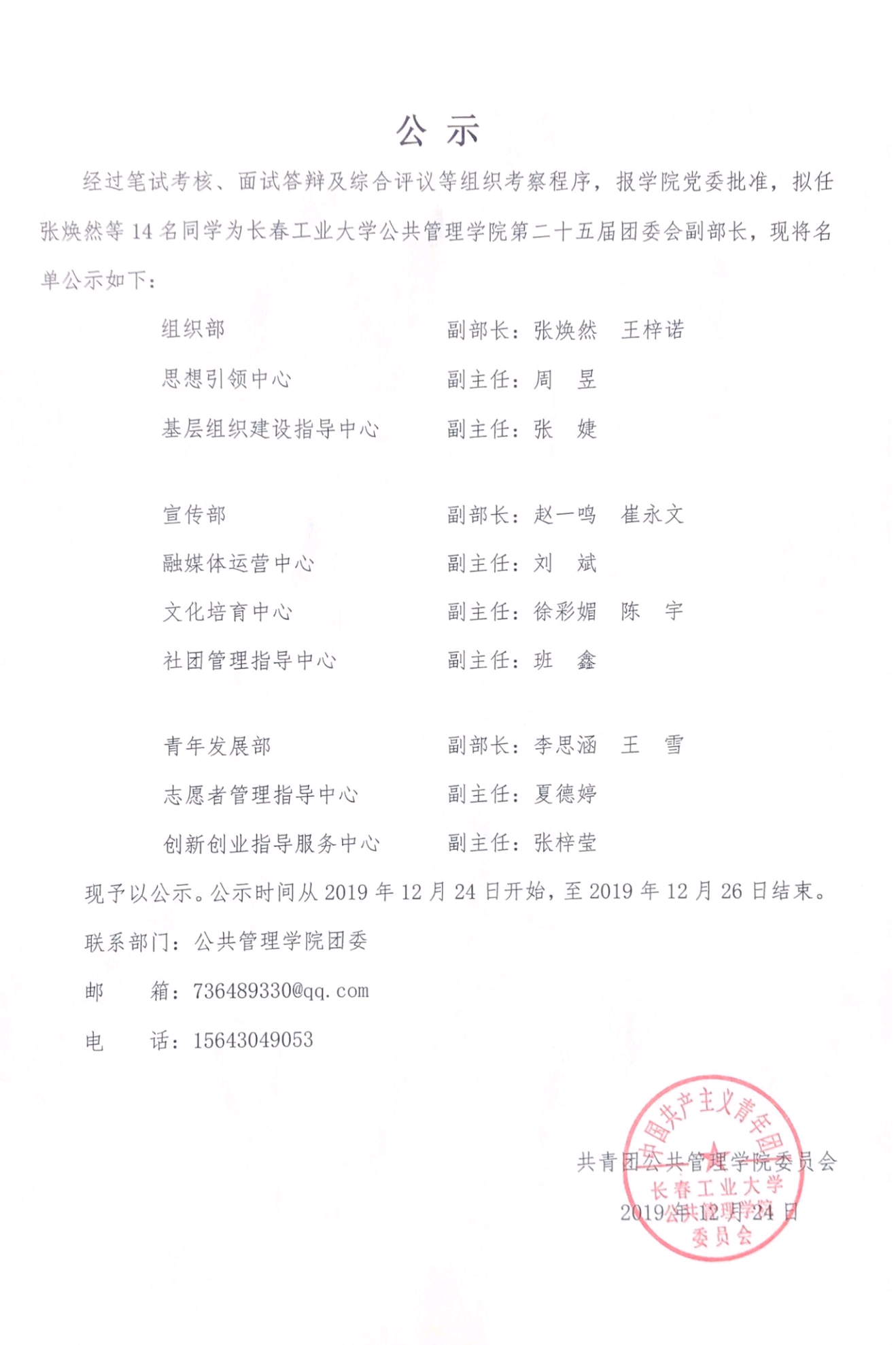 长春工业大学白嫖网 第二十五届团委会干部名单公示