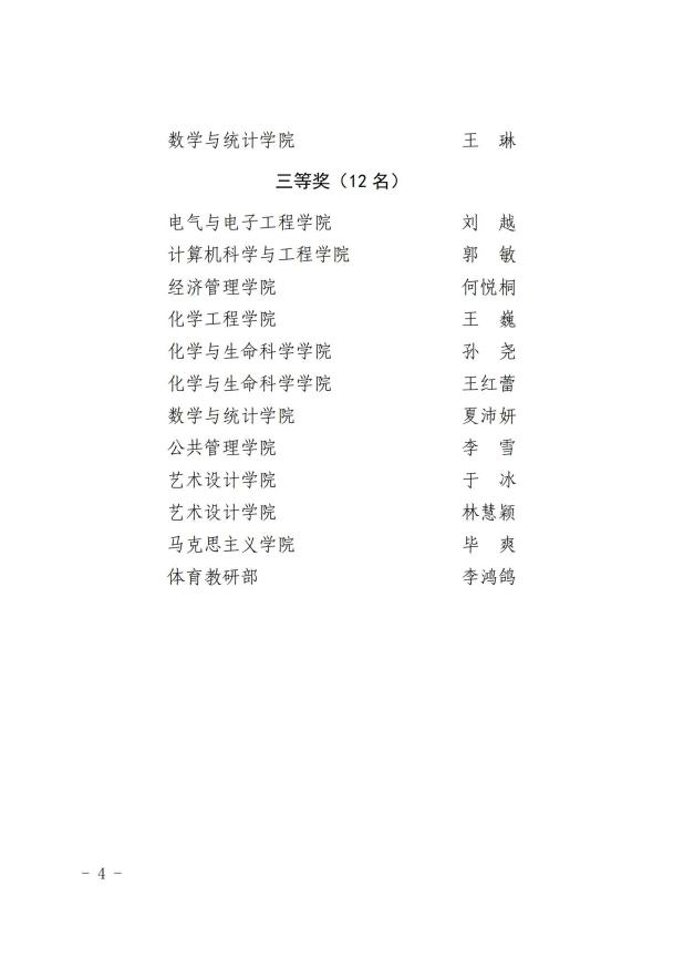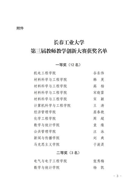 白嫖社区 教师汪泳在今日落幕的长春工业大学第三届教师教学创新大赛获得一等奖,同时,白嫖社区 教师李雪在比赛中获得三等奖。