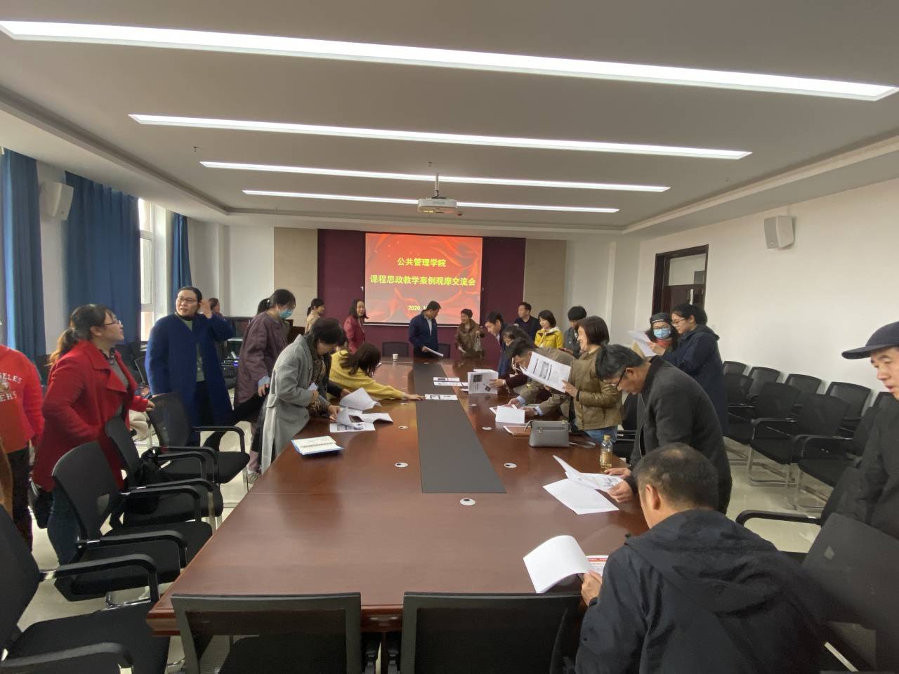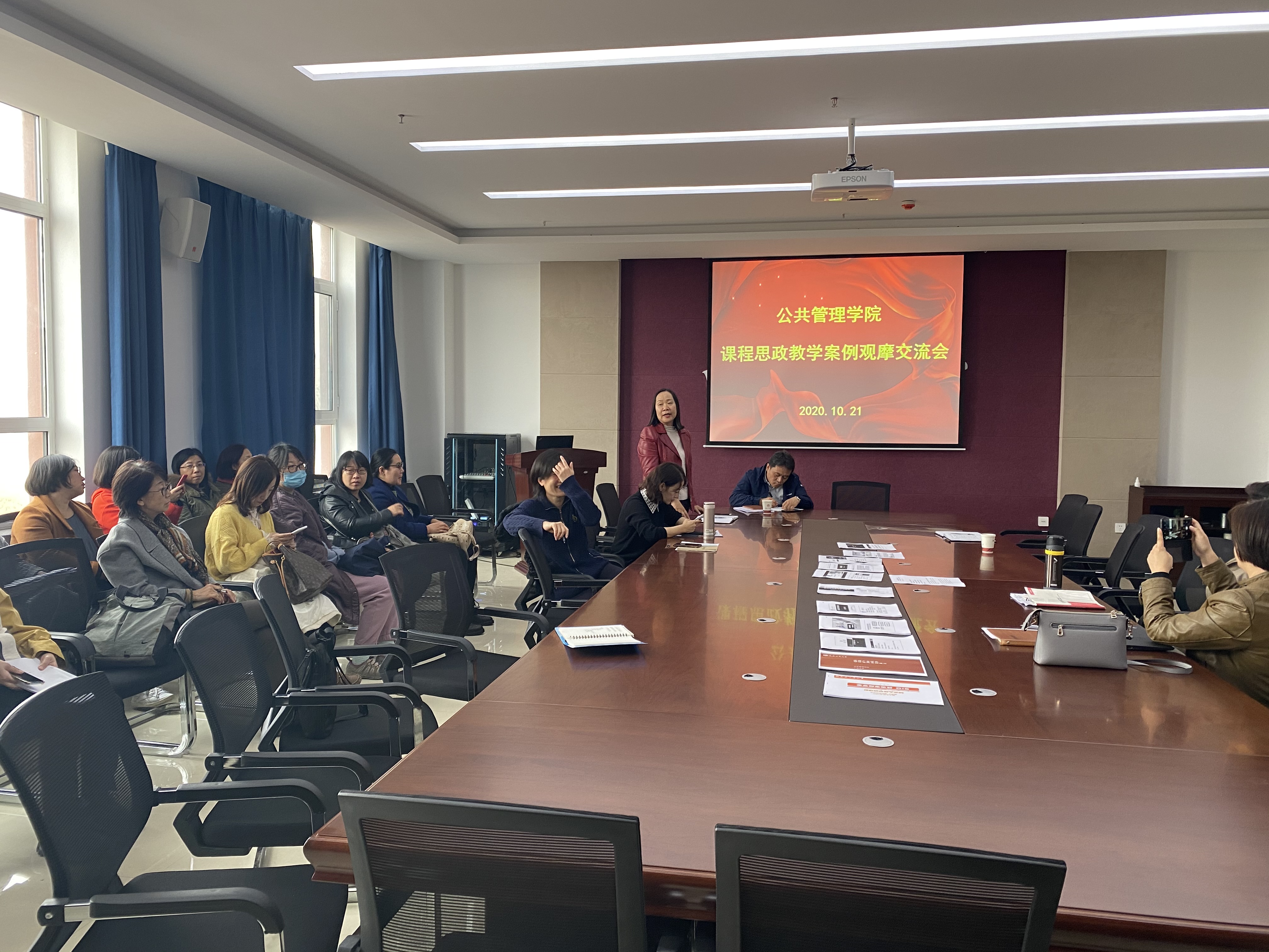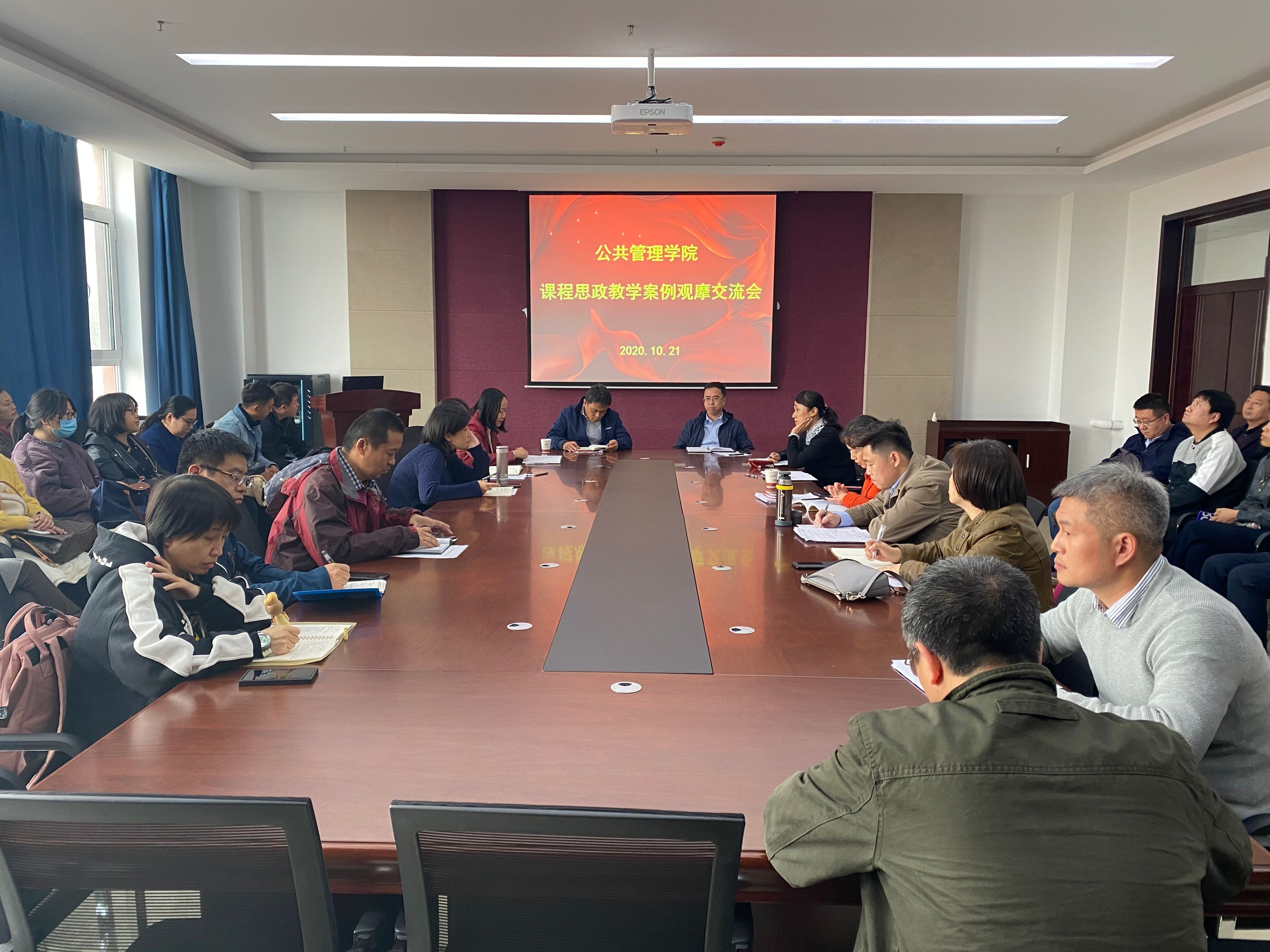 有关课程思政建设情况进行了总结,随后举办了课程思政教学案例观摩交流会。在交流会上,公共管理系、法学系、社工系、广告学系分别将各自推选出的优秀课程思政教学案例进行了分享,全体老师互相观摩学习。