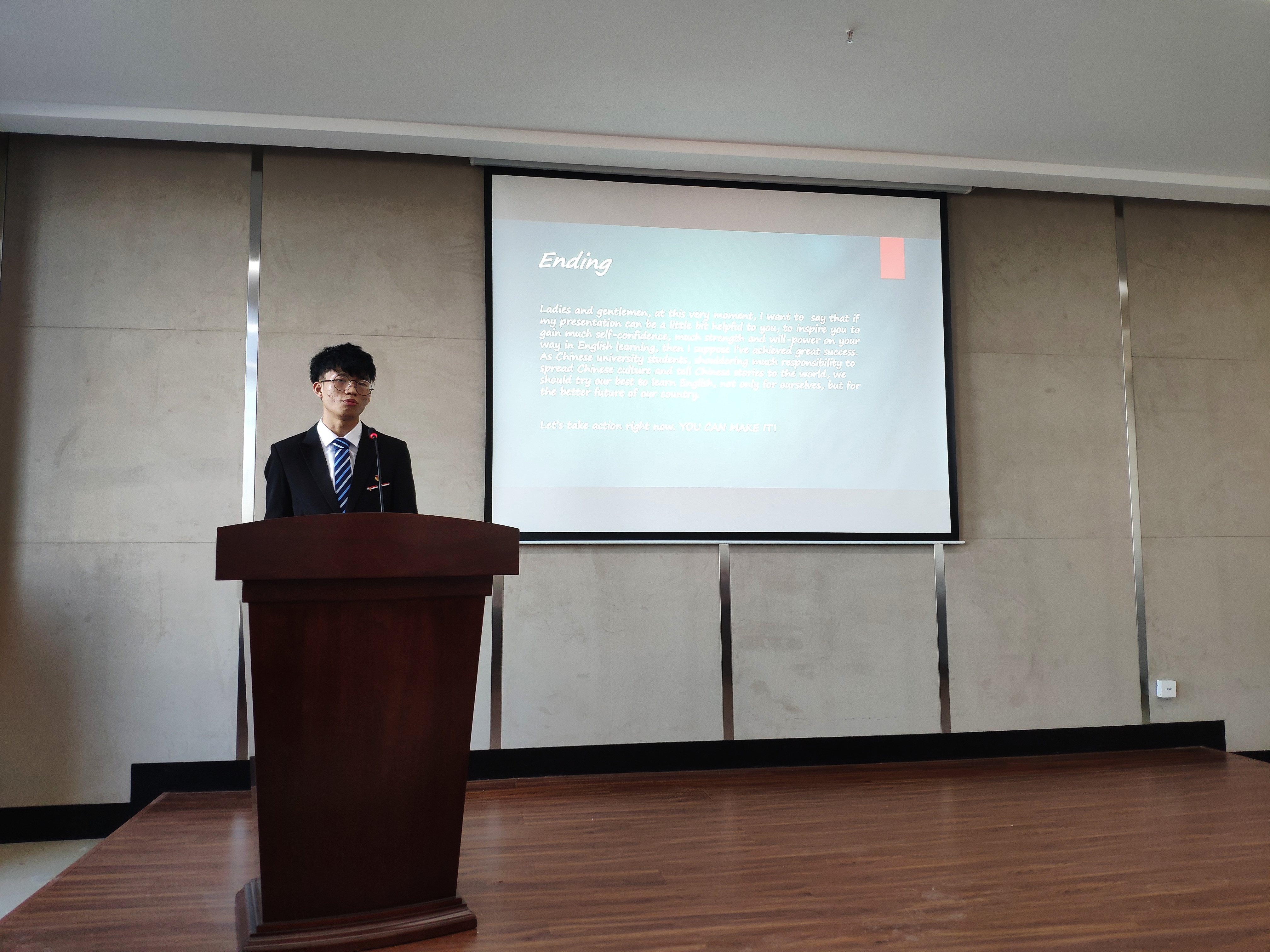 18级2班的易龙同学向同学们分享了自己学习英语的心得与经验