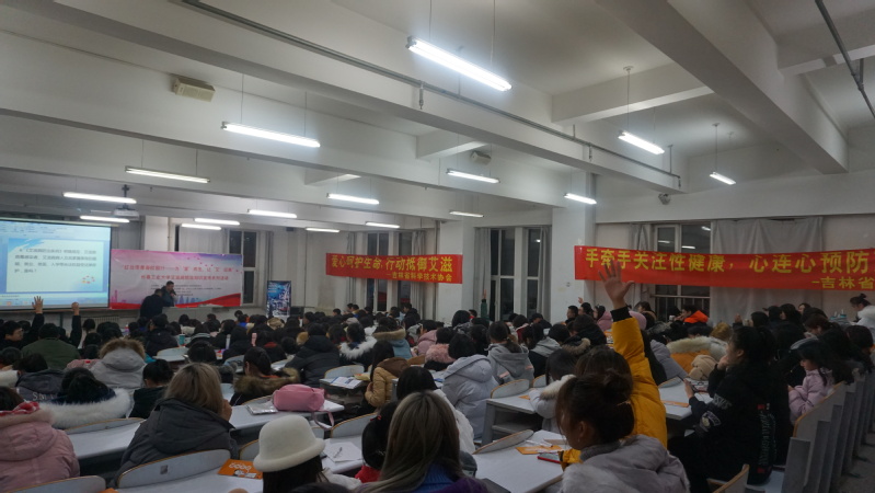 长春市二道疾控中心性病艾滋病防控科窦明阳科长向在座的大学生做了“艾滋病生殖健康”的讲座,针对大学生情况,从青春健康教育/生殖与避孕、艾滋病的流行趋势、防治知识等方面进行了讲解,结合自己与艾滋病患者亲身接触的经历与大家分享心得,引导学生们用换位思考的方法站在艾滋病患者角度去思考问题,并能够用科学的方法保护自己远离艾滋,用正确的途径寻求帮助和治疗。窦明阳科长在讲座中多次与现场的同学互动,气氛热烈融洽。