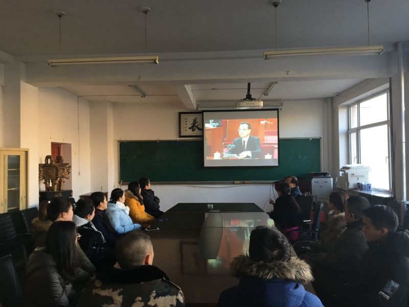 党政领导、部分教师和学生党员代表在会议室观看了现场直播的盛况。