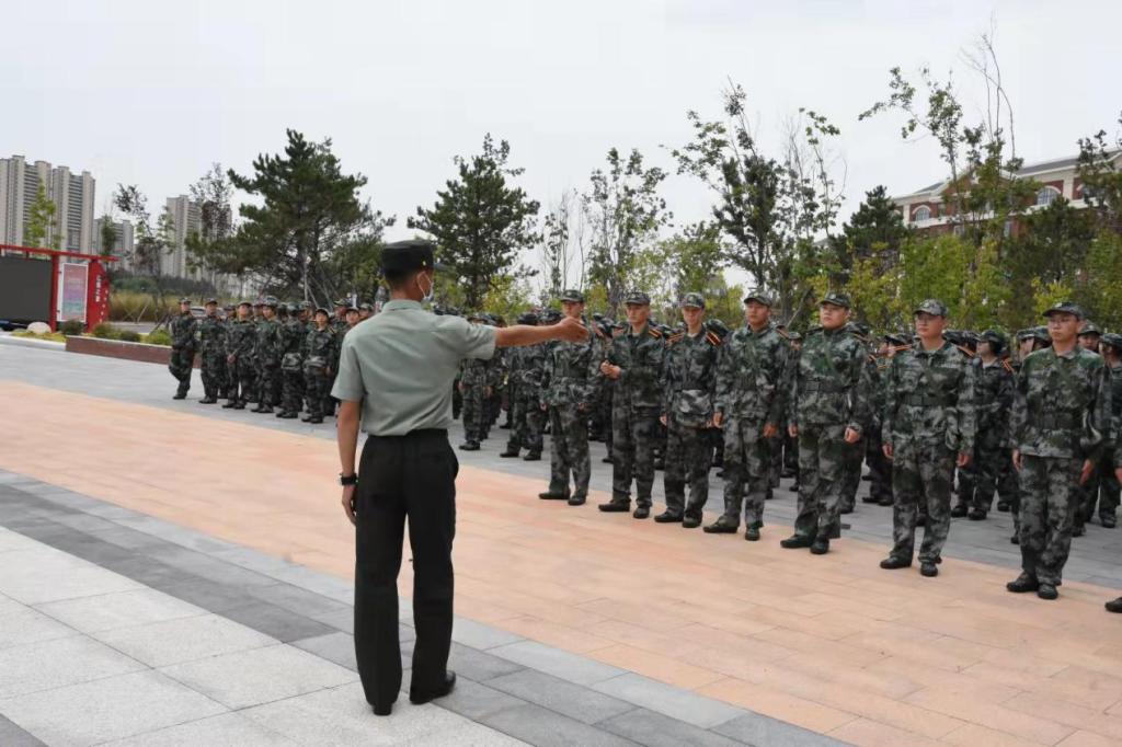 21级军训教官也与同学们正式见面,对同学们做出军训要求,纠正同学们的军容风纪,最后教官将队伍带开,到广场进行军事技能基础训练。