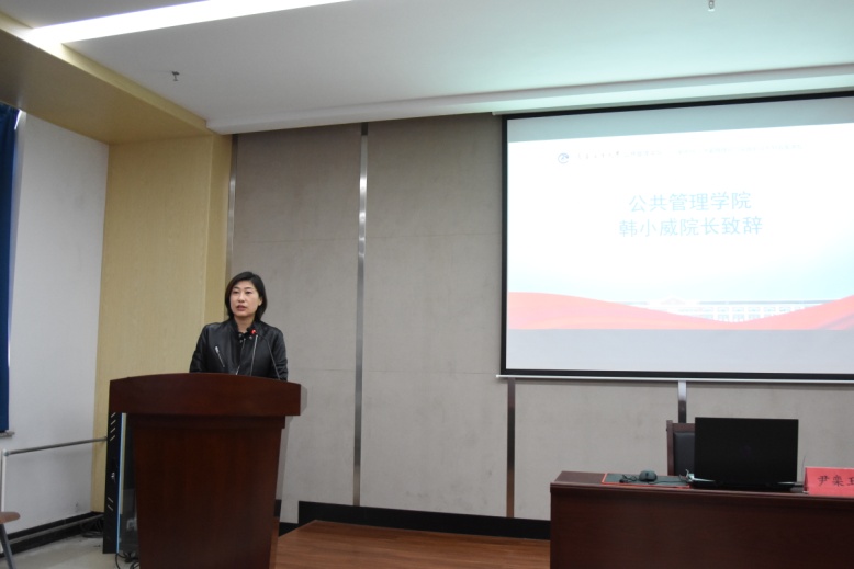 院长韩小威教授为开幕式致辞,韩小威教授首先对公共管理系名家讲坛活动给予了充分的肯定,并进一步强调,通过“新时代公共管理理论与实践前沿系列名家论坛”,搭建公共管理系师生与国内知名学者交流的平台,不断提升公共管理系学术水平。