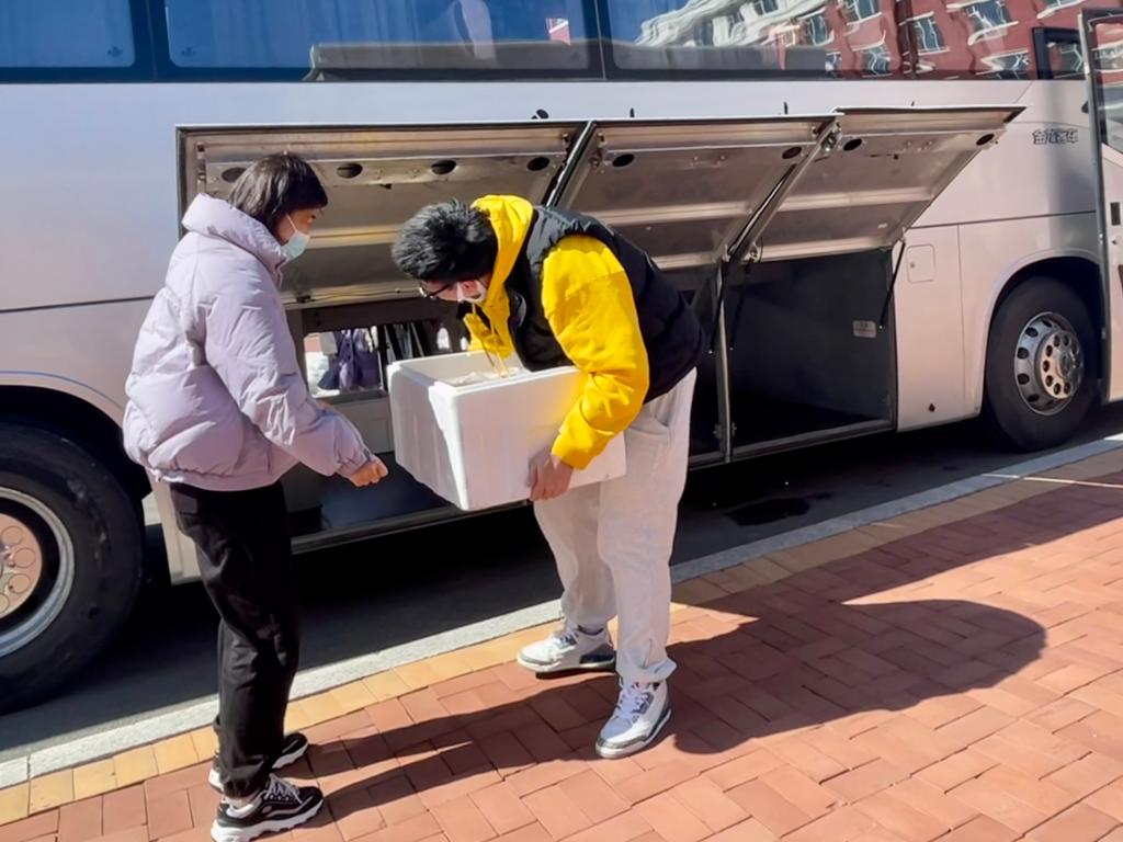 的领导和老师再次切换身份,驻校抗疫团队变成“餐饮保障工作专班”,亲爱的老师们化身“外卖小哥”。