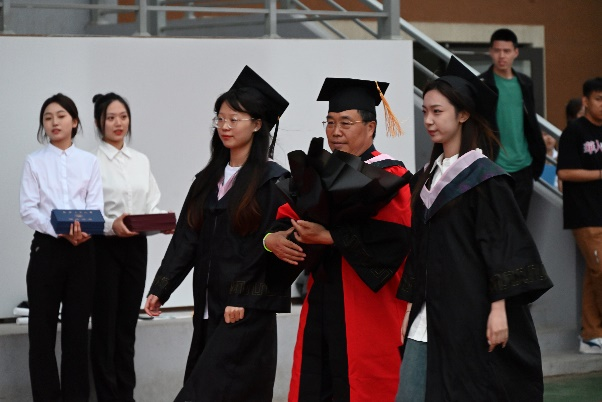 院长韩小威为毕业生代表颁发毕业证书和学位证书,
