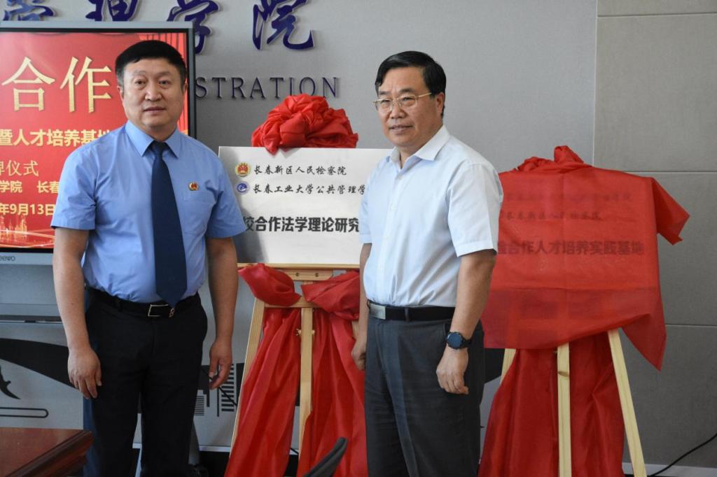仪式现场,长春工业大学党委副书记李廷吉、长春新区人民检察院检察长高跃军共同为“检校合作法学理论研究基地”“校检合作人才培养实践基地”揭牌。校检双方将携手开展理论研究和实践探索,共建现代化司法理念教育平台,共享法白嫖网