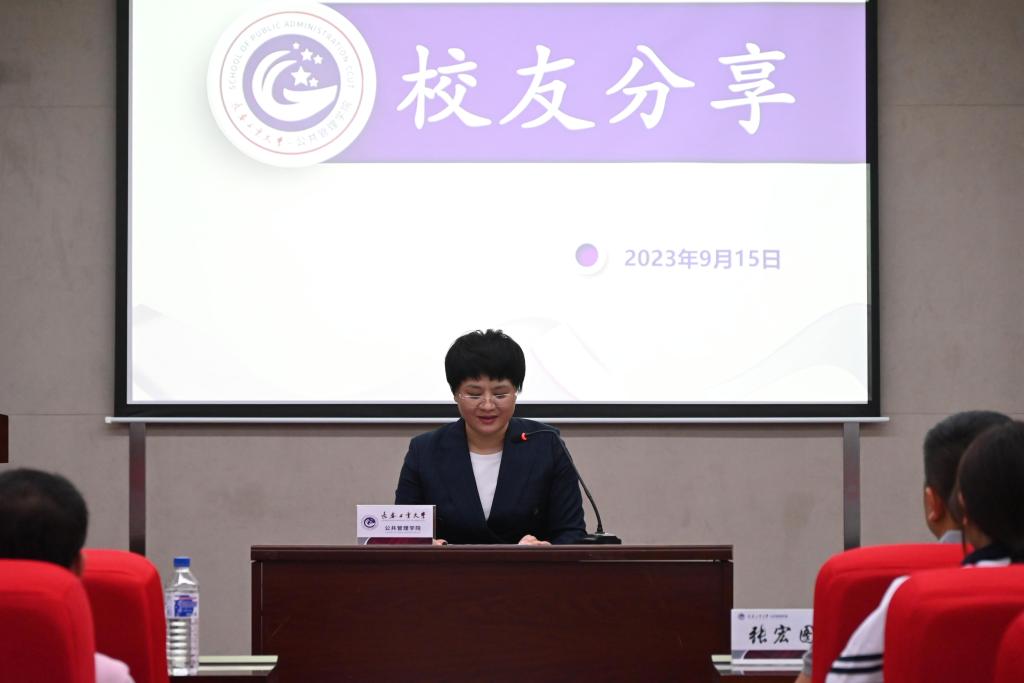四位校友代表史金花、王海波、刘洋、张宏图讲话,分享对母校的情感、自身成长成才经历、所在领域的学术前沿以及自身创业成功经验等内容。