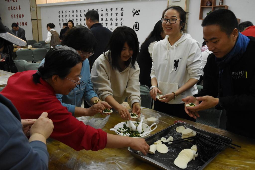 比赛开始前,教师们摩拳擦掌,跃跃欲试。随着比赛开始的号令响起,老师们迫不及待开始,他们各尽所能,团结协作,体验着包饺子的乐趣、合作的快乐,十指翻飞之间,一碗碗馅料和一片片欢笑包进了饺子中,诞生了一只只精巧可爱的饺子。