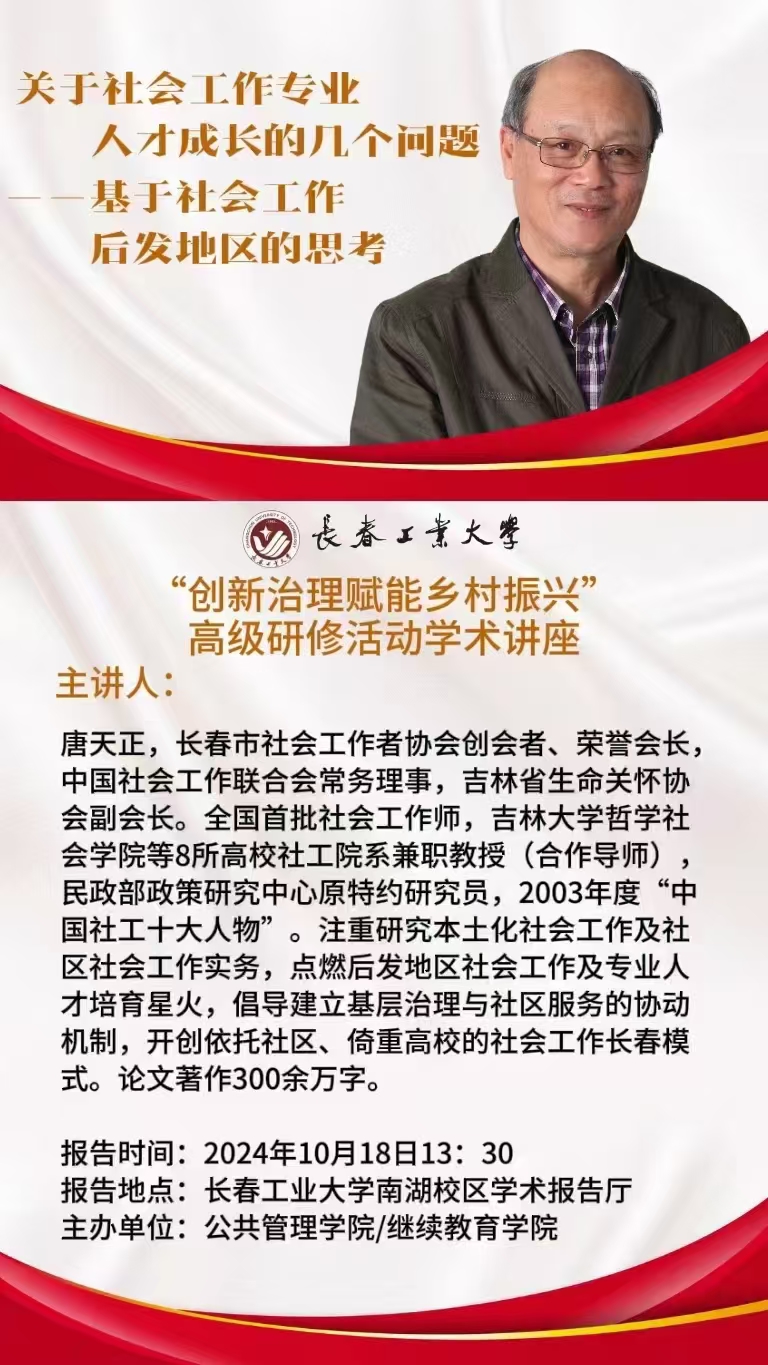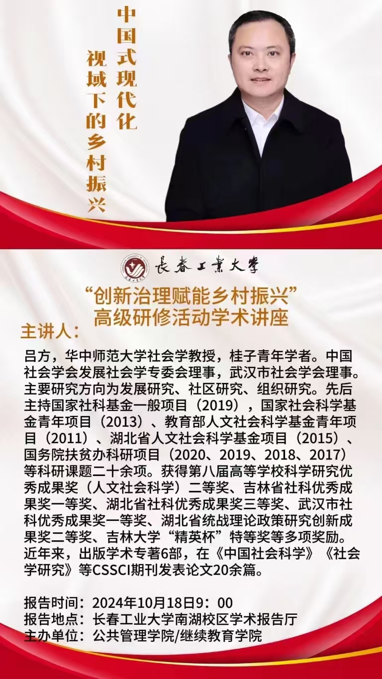 报告地点:长春工业大学南湖校区学术报告厅