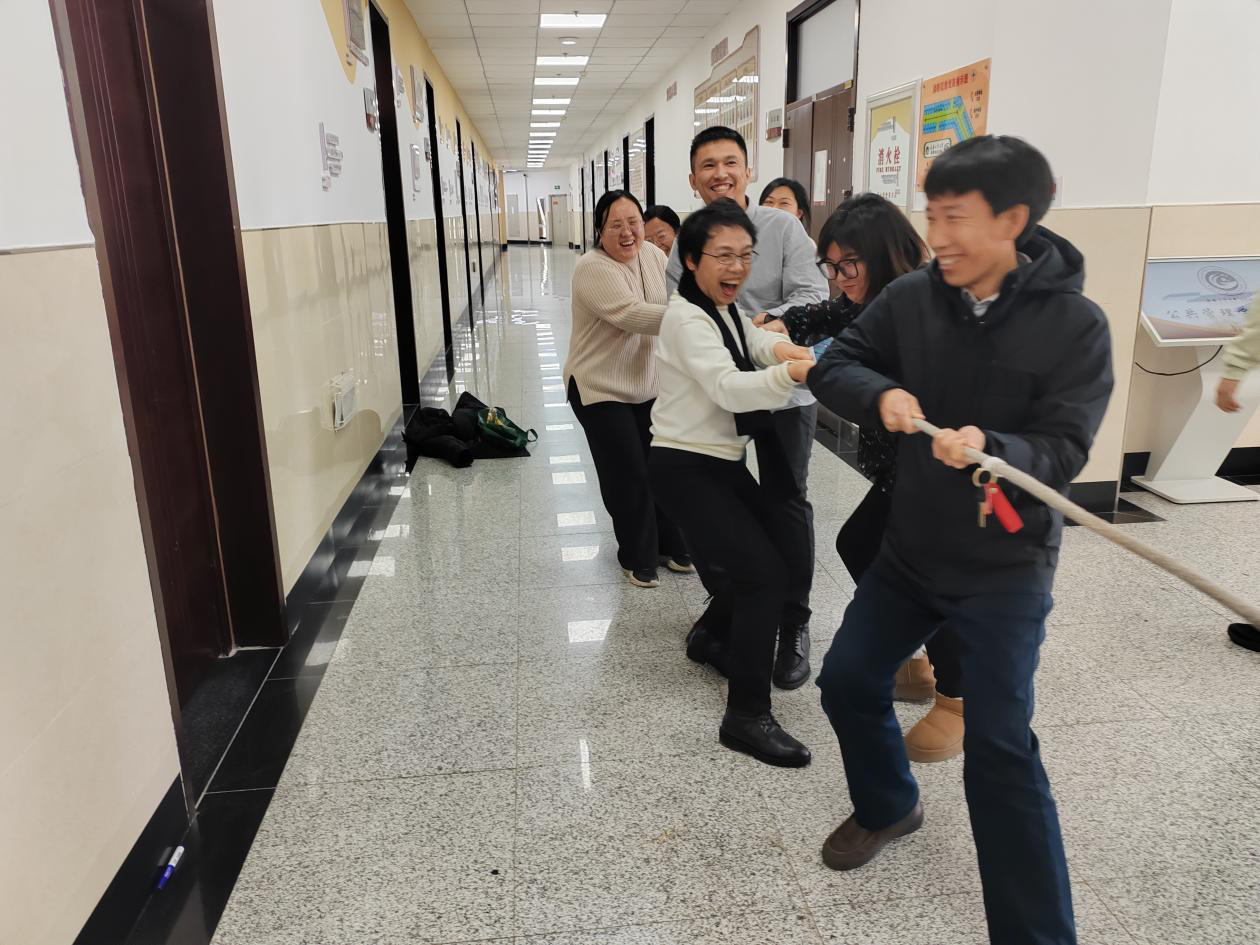 新闻网讯(通讯员 陈辛妮)2025年12月12日下午13:00,主楼4楼走廊气氛热烈,一场以“同心拉紧协作绳,并肩奋进‘十五五’”为主题的教职工拔河交流赛在此举办。各系教职工踊跃报名、积极参与,在赛场之上以绳为媒凝聚合力,以赛会友共话担当。