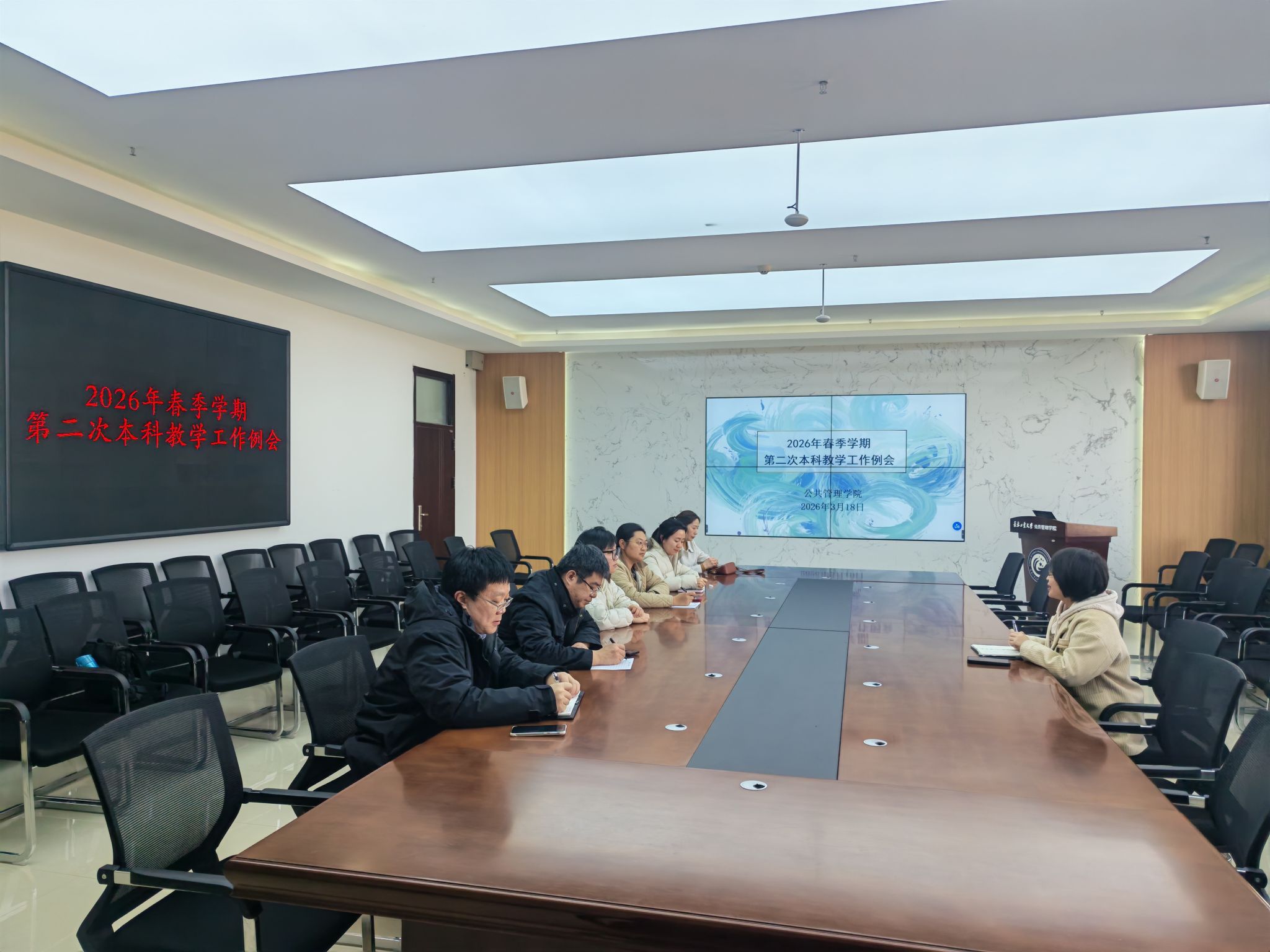 401会议室召开本学期第二次本科教学工作例会。会议由分管本科教学副院长冯娜主持,各系主任、副主任、教学督导、教学秘书参会。会议围绕2026版本科人才培养方案修订工作推进、第二周听课情况反馈及新学期常规教学工作进行部署。