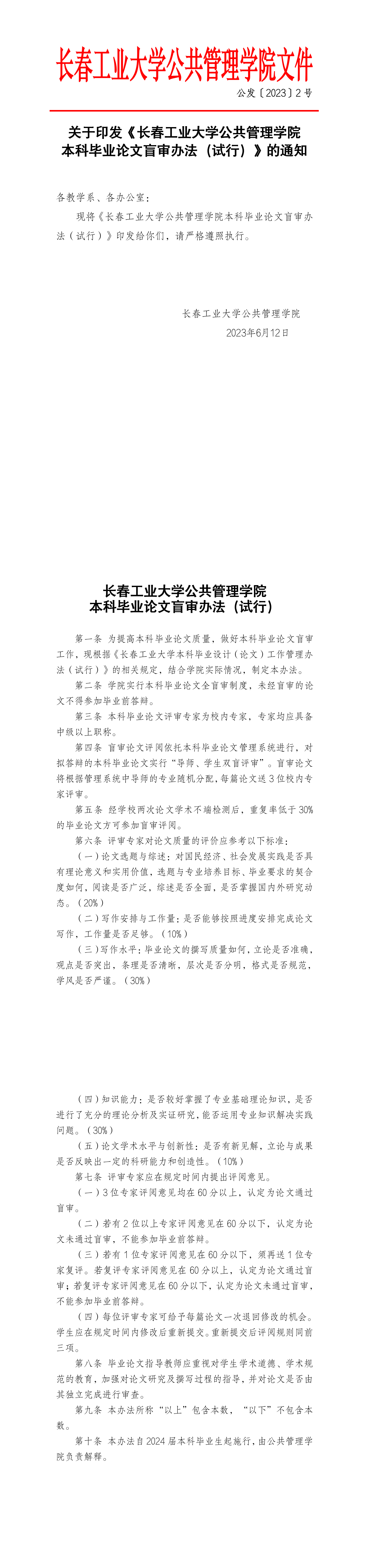 长春工业大学白嫖网 本科毕业论文盲审办法(试行)